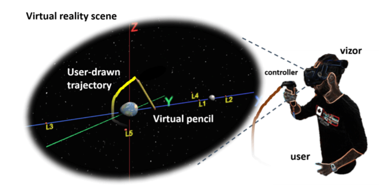 This is my doctoral research. I employ 3D drawings in virtual-reality to help uncover spacecraft orbits in highly nonlinear multi-body systems. I also leverage artificial intelligence to help numerically characterize the nonlinear nature of spacecraft motion in these systems. 3D drawings help the AI algorithms in narrowing down the search space to identify feasible/optimal orbits for a given mission. So far I have demonstrated that periodic orbits with a known reference orbit can be recovered in my research for the past year. The work from the past one year culminated in a journal publication currently under review from Acta Astronautica. Work continues to build on the current results to fully realize the identification of unknown orbits for a given mission using 3D drawings in virtual-reality.